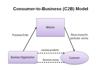 Consumer-to-Business (C2B) is an e-business model where consumers (individuals) sell products and services which are consumed by businesses and organizations. This model opposite to B2C model.